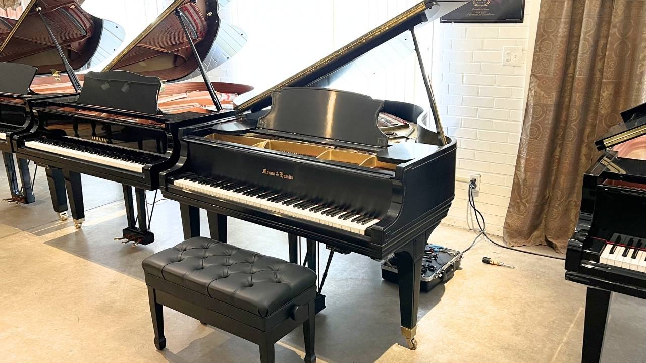 Handcrafted in the United States during the “Golden Age” of piano building, this 1935 Mason & Hamlin Model A remains a premier example of American engineering and power. This vintage grand piano is in good condition, featuring the legendary Tension Resonator system that preserves its structural integrity and deep, resonant bass.